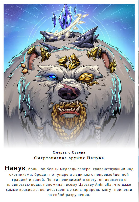 Animalia — независимая карточная онлайн игра F2P с использованием NFT. Коллекция минтилась 18 декабря за 0,038 eth. Полный саплай — 3888, на ревеле каждая pfp будет отличаться замысловатым дизайном, в центре которого - Нанук