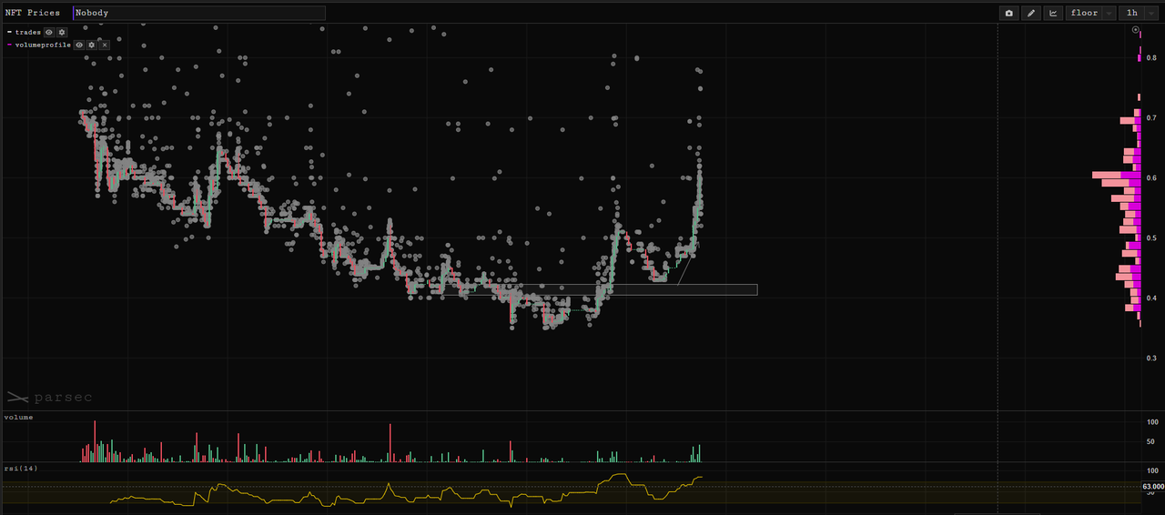 Это касается Nobody, о котором вчера мы писали. На самом деле все оказалось не так как хотелось, вместо ожидаемого диапазона 0.4-0.42, достигнут был 0,43 максимум и после этого дошли до 0,6 после анонса. Правильным размышлением в данной ситуации было подчеркивание таких пунктов как: