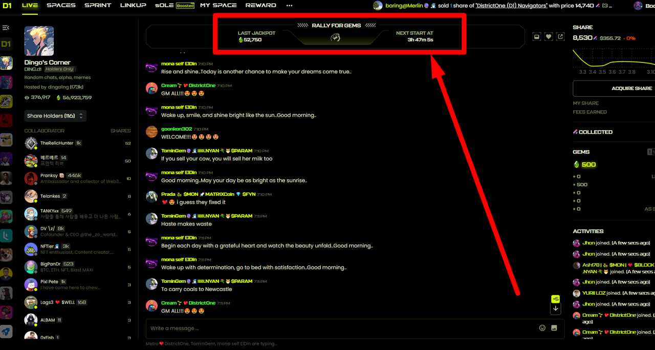 DistrictOne [D1] - это приложение для социальных сетей, с групповыми чатами с помощью увлекательных игр в сети Blast L2, (аналог с FriendTech). Инвесторы у проекта серьезные и на наш взгляд занимает лидирующее место среди других: Binance Labs, Crypto.com Capital, KuCoin, DWFlabs