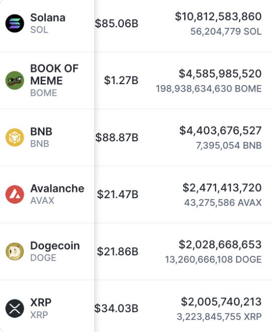 Сейчас большой хайп имеет токен в экосистеме SOL $BOME, который набрал MKT CAP $1.1B и обогнал $BNB, $AVAX, $DOGE, $XRP в объеме торгов за 24 часа [пруф]