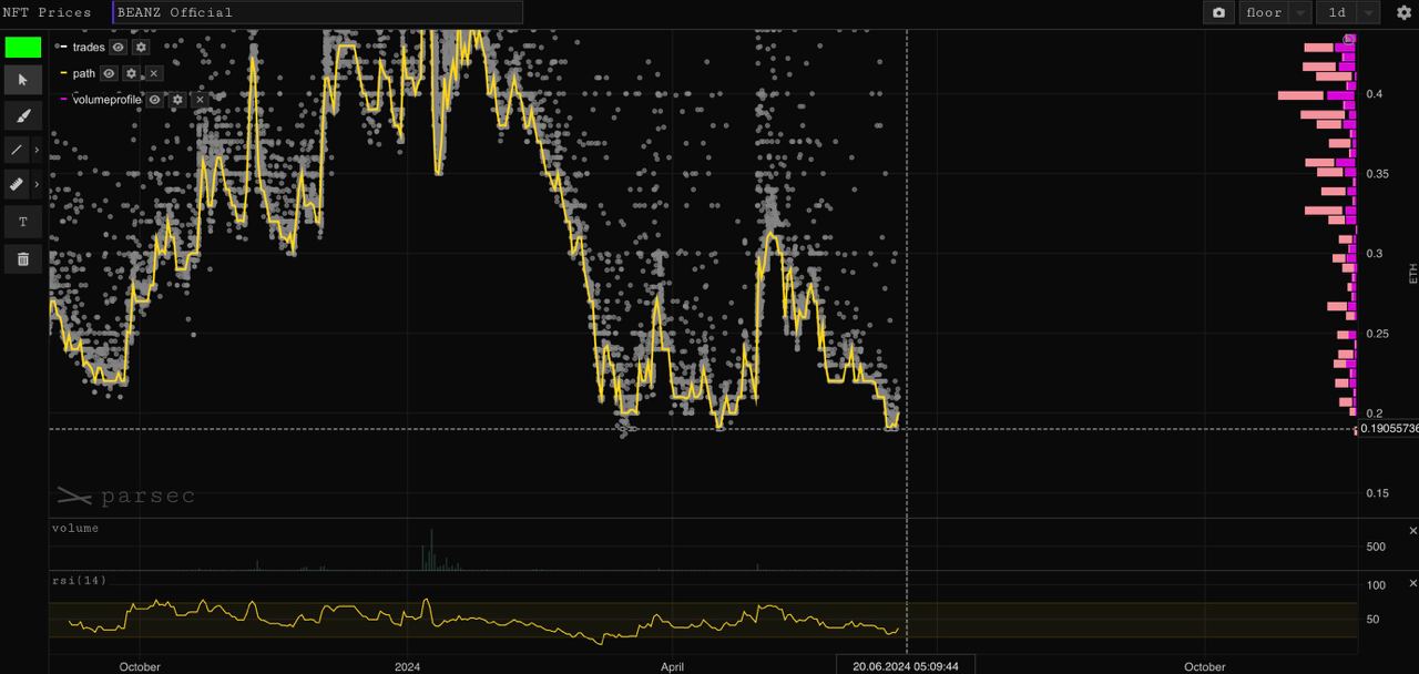 • Beanz - как и говорили в прошлых постах брали все что ниже 0.21. Во время вчерашнего свипа разгрузились некоторыми позициями в 0, остальными в +. Ждём отката к 0.18 - 0.2, действуем тут уверенно, так как торгуем эту коллекцию уже давно и находимся сейчас у самого дна.