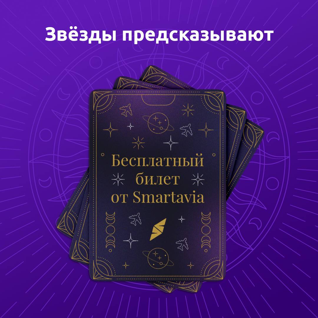 Друзья, нам карты таро сказали, что пора разыграть билет на любое направление Smartavia ✈️💜