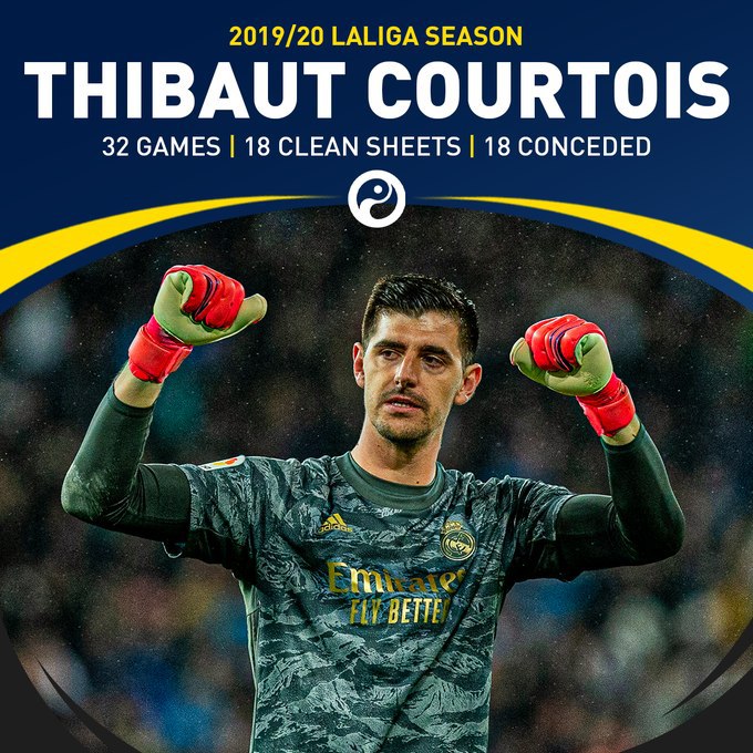 В этом сезоне у Тибо Куртуа больше всего сухих матчей из всех вратарей топ-5 лиг: