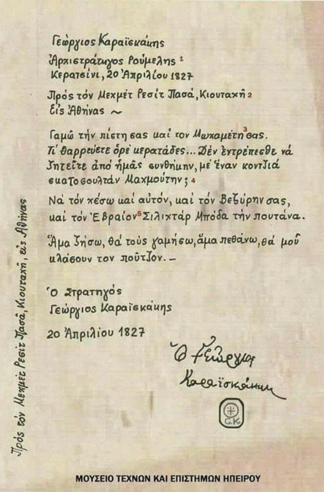 Караискакис отвечает Мехмету Решит-паше на требование сдаться.