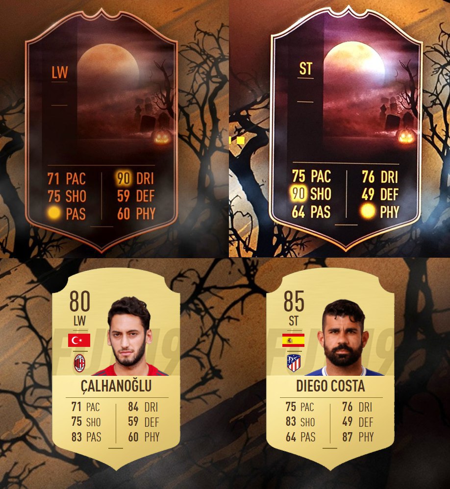EA Sports тизерит карточки Хэллоуина. Судя по статам, это Хакан Чалханоглу и Диего Коста.