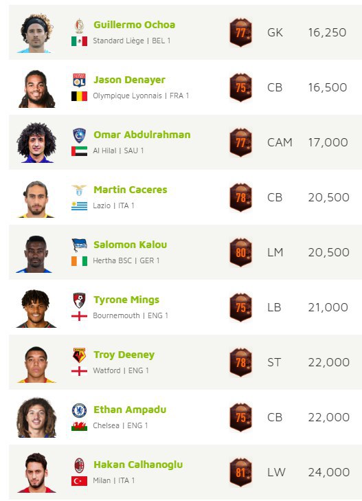 Список самых дешевых игроков команды Ultimate Scream. Могут пригодиться в СБЧ, посвященных Хэллоуину