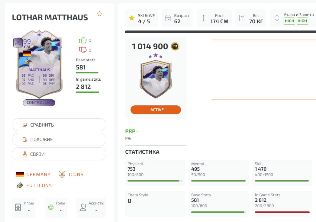 Карта кумира обложки Лотара Маттеуса получила лучшие характеристики в истории Ultimate Team: