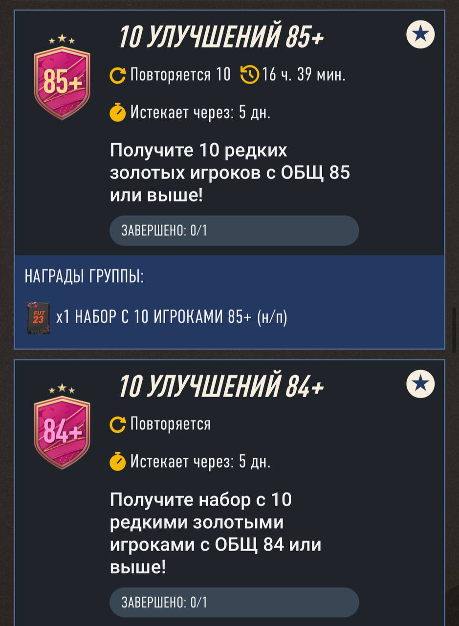 Также вышли сборки улучшения: 84+ х10, 85+ х10, выбор 80+, бронзовое и серебряное