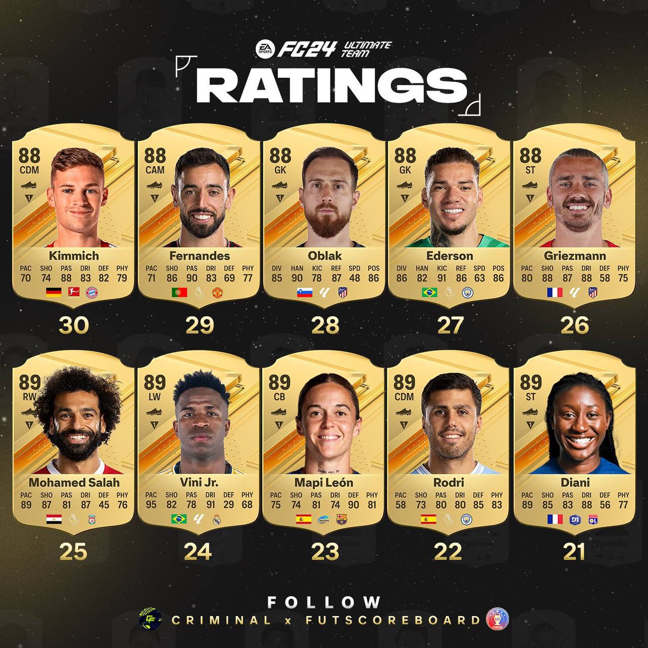 Рейтинги топ 31-40 карт UT 24 и сборной Аргентины от инсайдеров