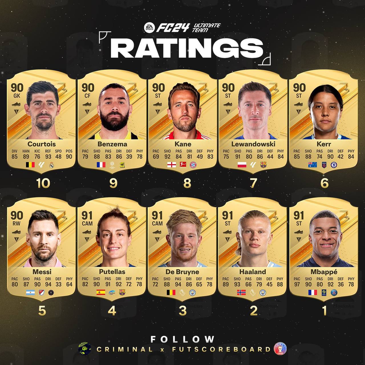 Инсайдеры показали рейтинги Лионеля Месси и Криштиану Роналду.