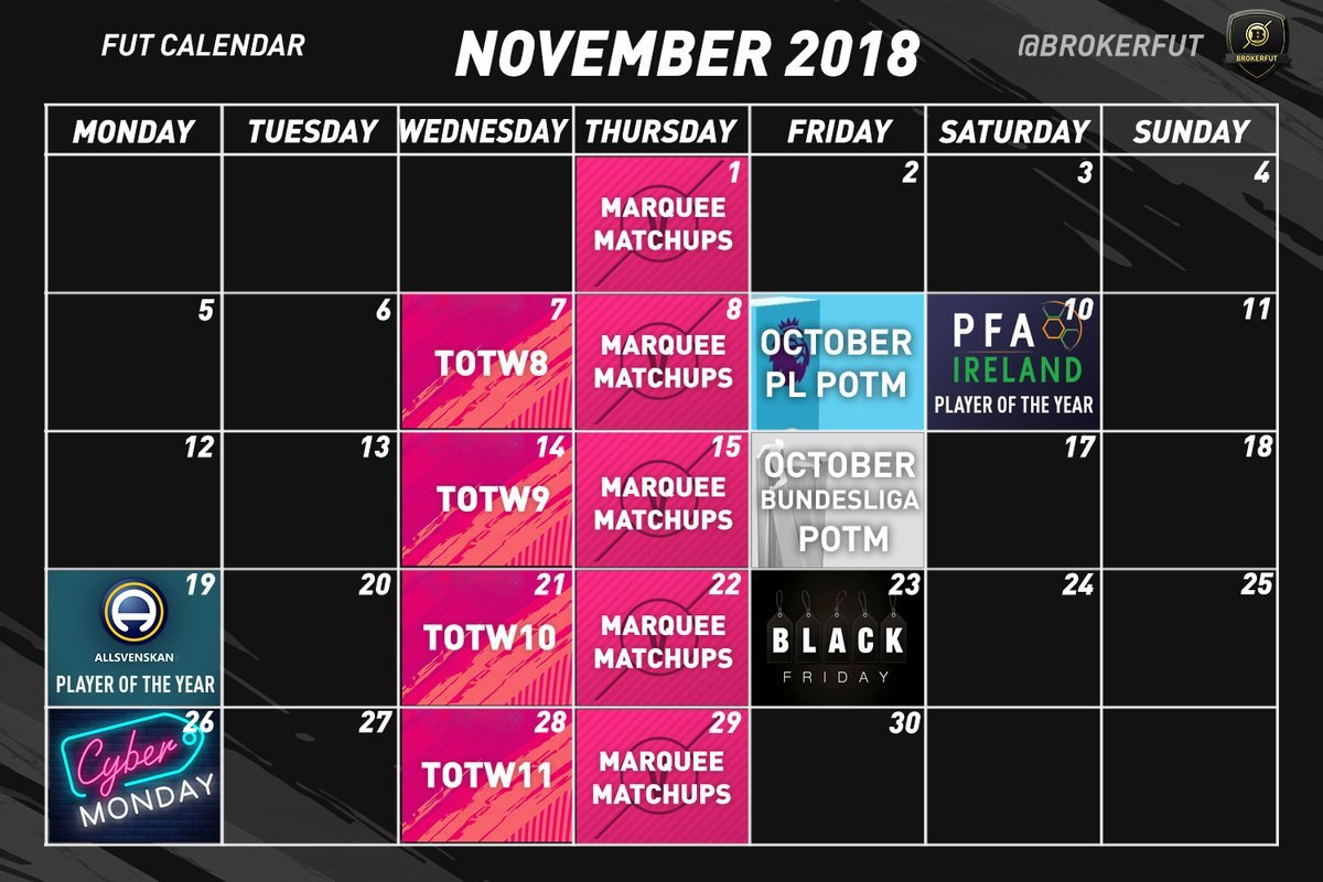 Календарь на ноябрь от BrokerFUT, даты и события ориентировочные