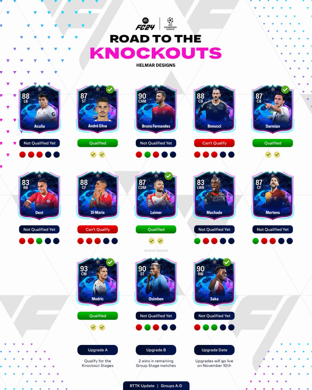Холанд (+1) получит второе улучшение за выход в плей-офф, Опенда (+2) получит оба улучшения, Де Пауль (+1), Пепе (+2) , Педро (+2) и Рейна (+2) получат улучшение за 2 победы.