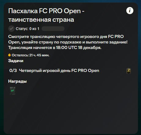 В задании «Пасхалка FC Pro Open - таинственная страна» необходимо забить 3 гола прицельным ударом японским игроком 🇯🇵