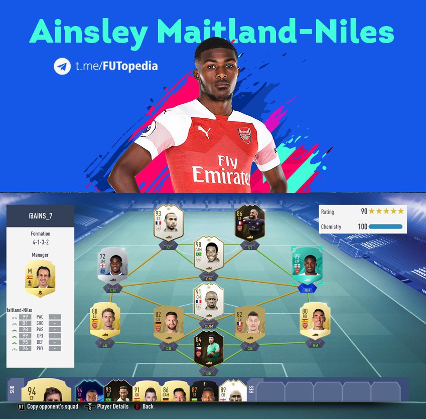 ​​На этой неделе в Squad Battles состав от английского полузащитника «Арсенала» Энзли Мейтленда-Найлза
