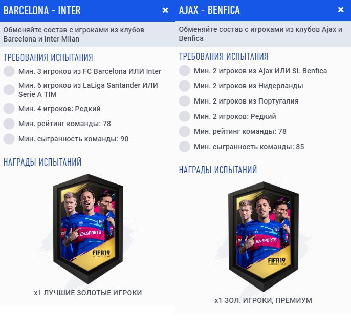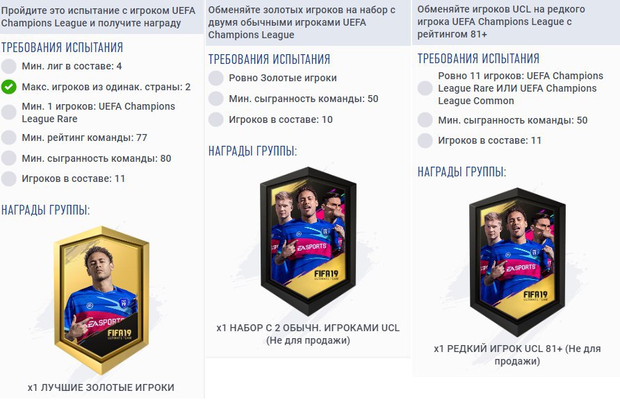 Требования в СБЧ «Проблеск гения», «UCL улучшение» и «UCL улучшение 81+». Игроки UCL в награду за сборки непродаваемые