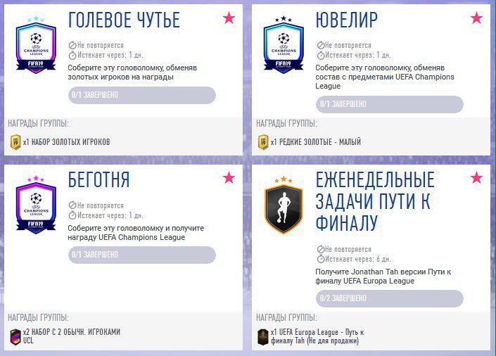 • Обычные игроки (Лига чемпионов УЕФА): Минимум 2