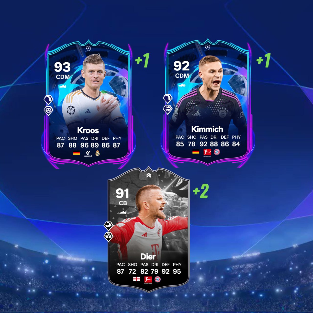 Тони Кроос и Йозуа Киммих получат улучшения карт RTTF за выход в полуфинал ЛЧ. Карта «противостояния» Эрика Дайера получит улучшение +2 за победу «Баварии»