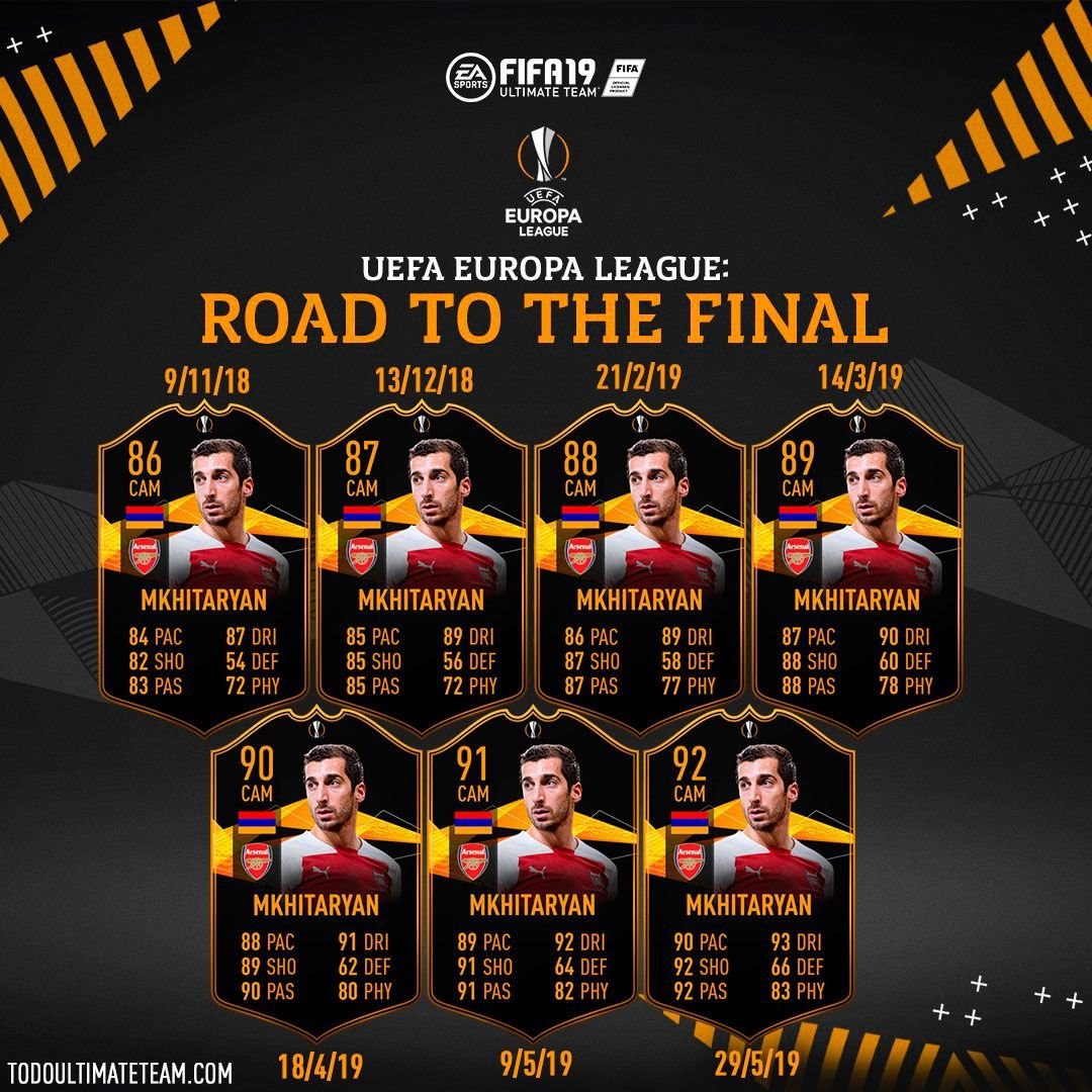 Впервые и в течение ограниченного времени в FIFA Ultimate Team 19 можно будет получить динамические предметы игроков «UEFA Champions League: путь к финалу» и «UEFA Europa League: путь к финалу». «Путь к финалу» во главу угла ставит успех команды: если команда преодолевает определенные этапы турнира, игрок получает усиление, независимо от качества его индивидуальной игры.