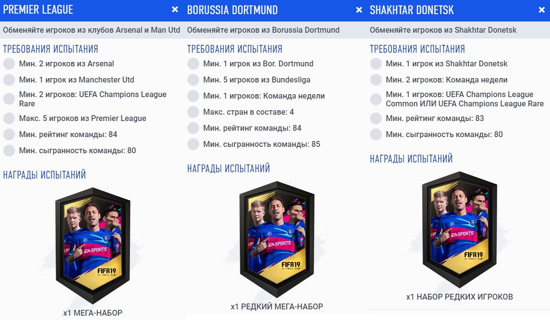 • Обычные игроки (Лига чемпионов УЕФА): Минимум 2