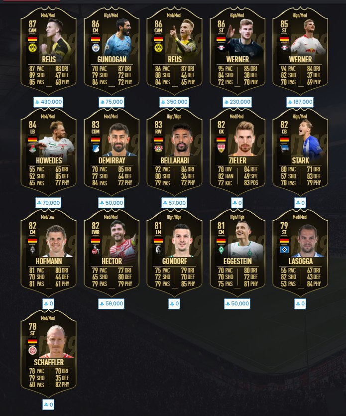 ​​Все немецкие информы с лимитом цены 50 000 монет достигли максимальной стоимости и исчезли с рынка. Если у вас есть такие карты в клубе, не упустите возможность подзаработать!