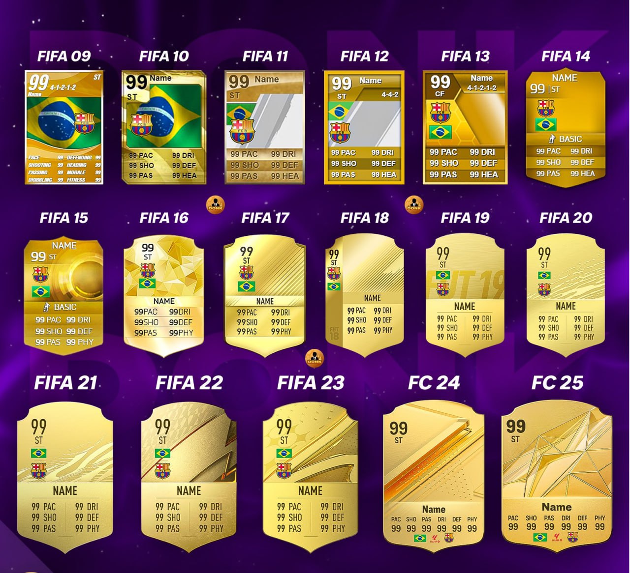 Как менялся дизайн золотых карт в Ultimate Team.