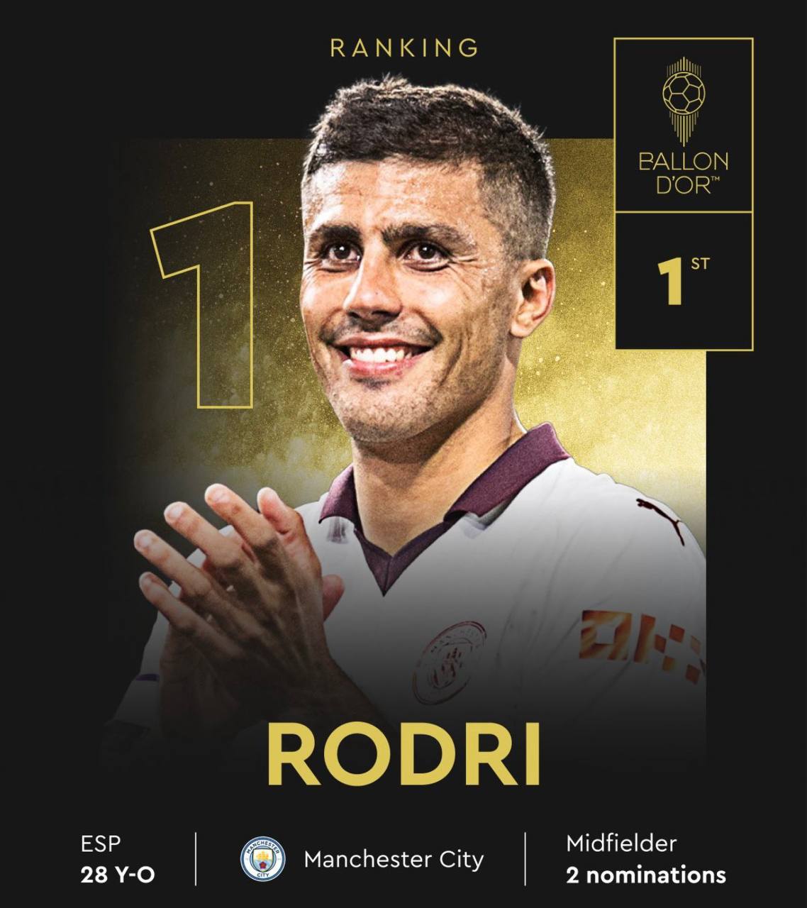 ​​⚡️ Родри — обладатель «Золотого мяча» 2024!