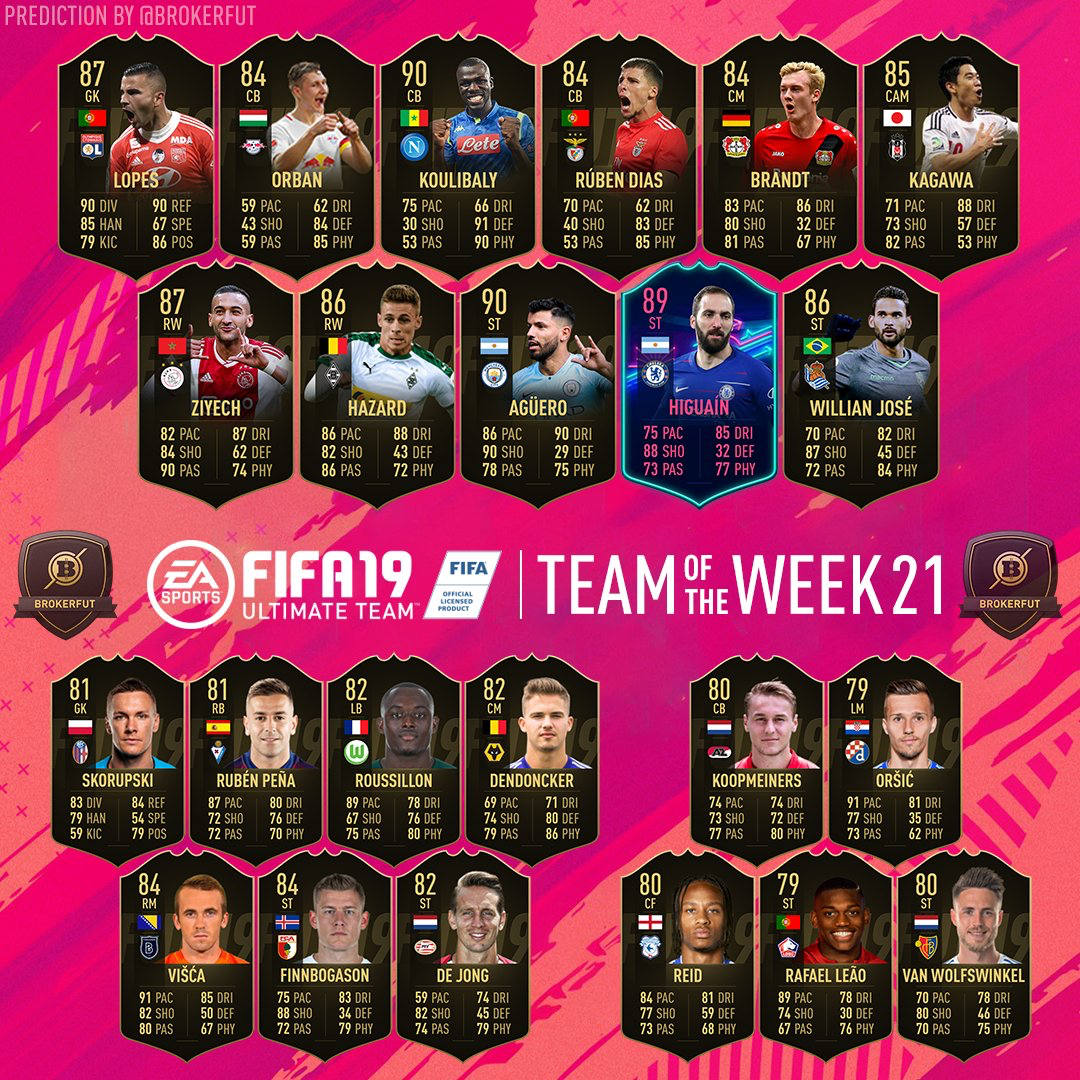 • Статы на картах всегда будут выше самой последней особой карты игрока. Для примера, последняя карточка Марко Ройса из команды недели имеет рейтинг 87, а его карточка «Headliners» с рейтингом 88. Если он попадет в команду недели и получит рейтинг 88, его карточка «Headliners» обновится до 89.