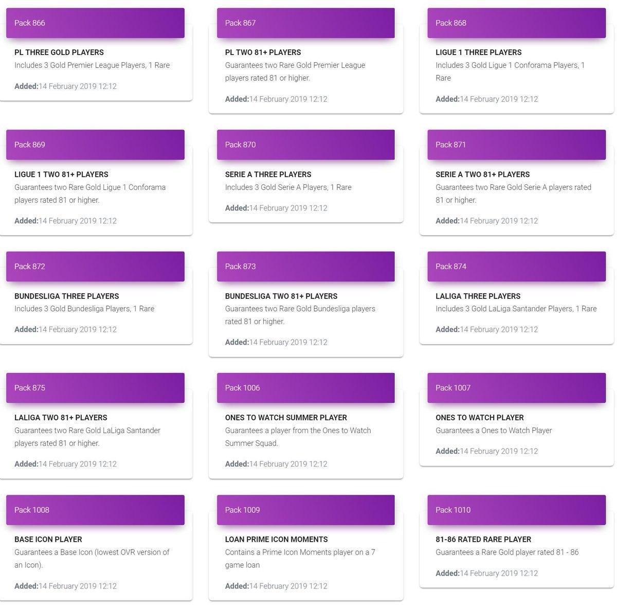 В коде игры обнаружено большое количество новых паков: с игроками из топ лиг, летними OTW-карточками, базовой версией кумира, игроками с рейтингом 81-86