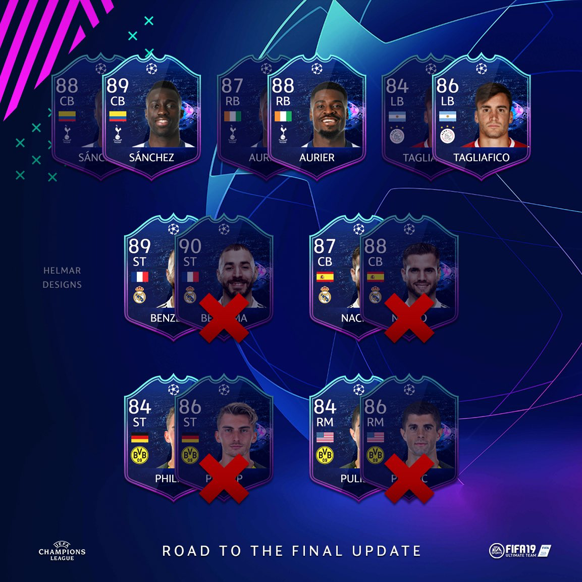 По итогам вчерашних матчей Лиги чемпионов обновление рейтингов получат 3 карты команды «Road to the Final»: