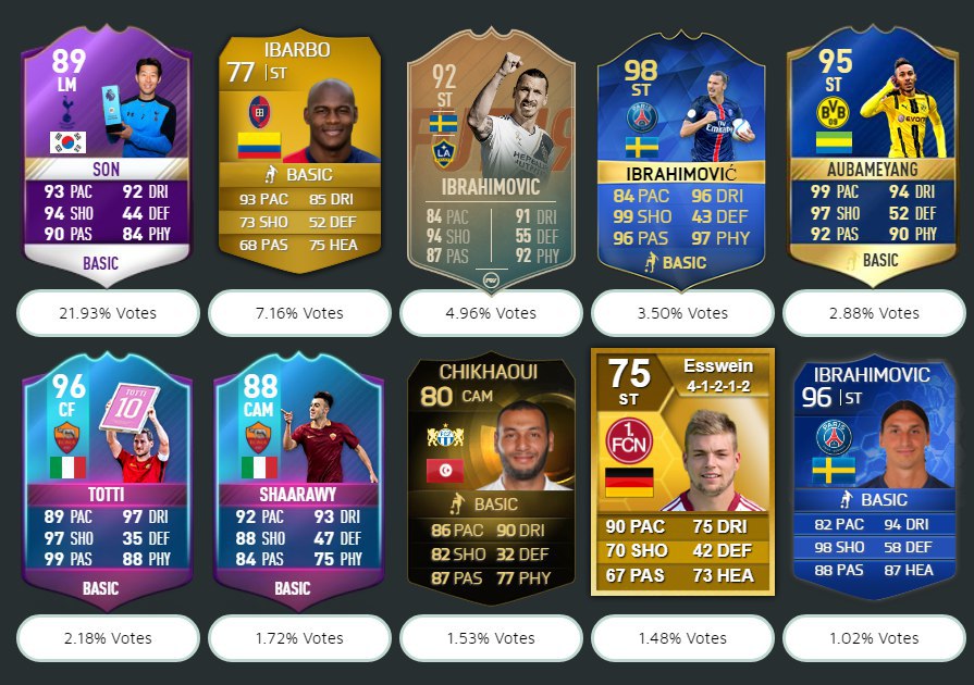 ​​Текущая десятка лучших карт в истории FUT по результатам голосования на сайте FUTWIZ