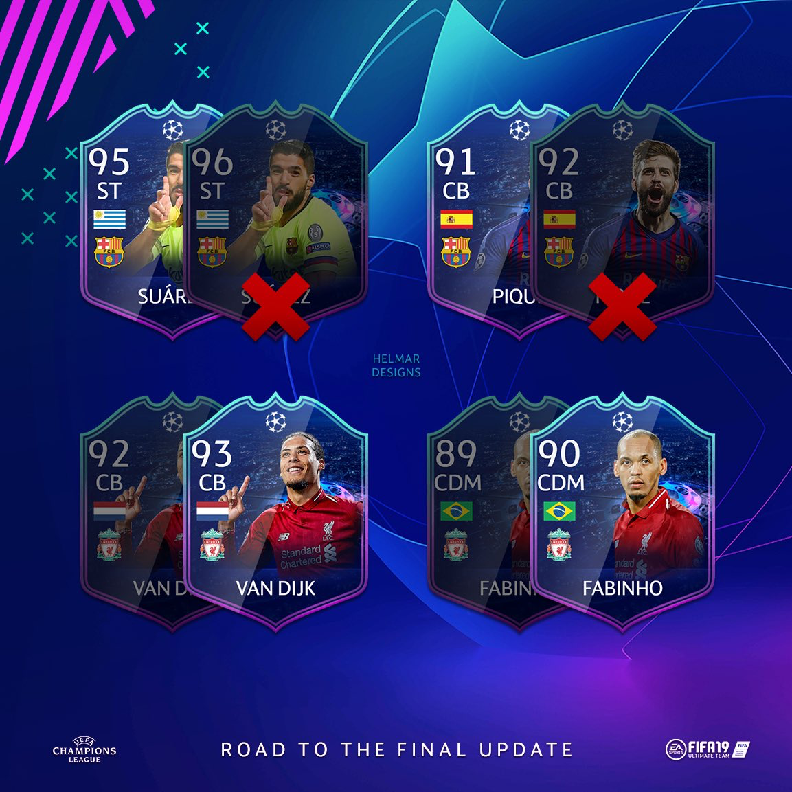 Карты «Road to the Final» Вирджила ван Дейка и Фабиньо получат обновление рейтингов