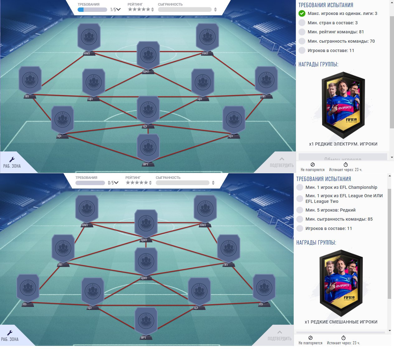 • Сыгранность: Мин 80