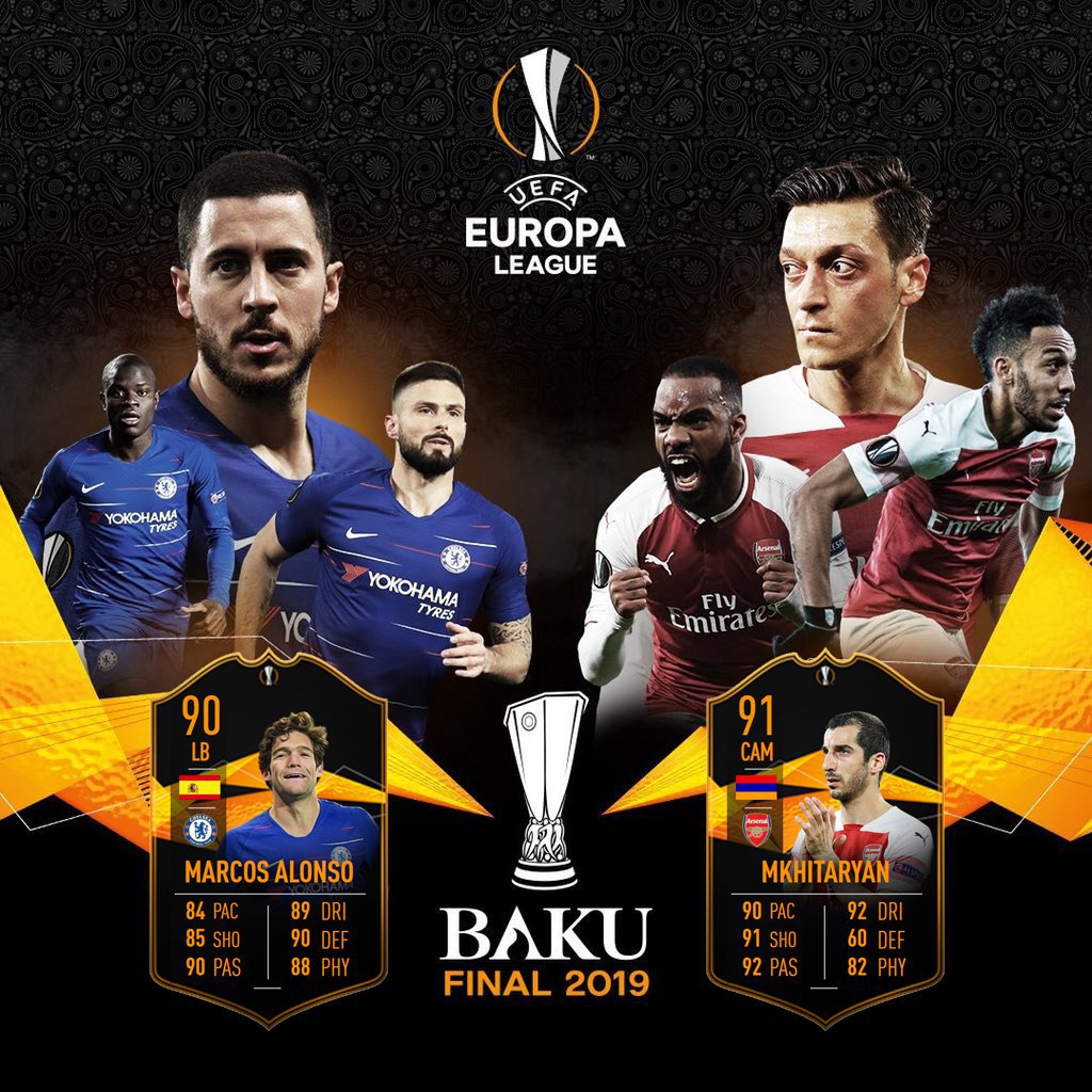 Сегодня в 22:00 МСК на бакинском стадионе «Олимпийский» состоится финал Лиги Европы между «Челси» и «Арсеналом»!