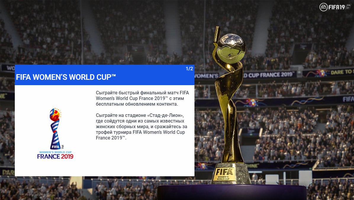 На ПК, PlayStation 4 и Xbox One появилось обновление, позволяющее сыграть финал Чемпионата мира по футболу среди женщин 2019 во Франции в режиме быстрого матча.