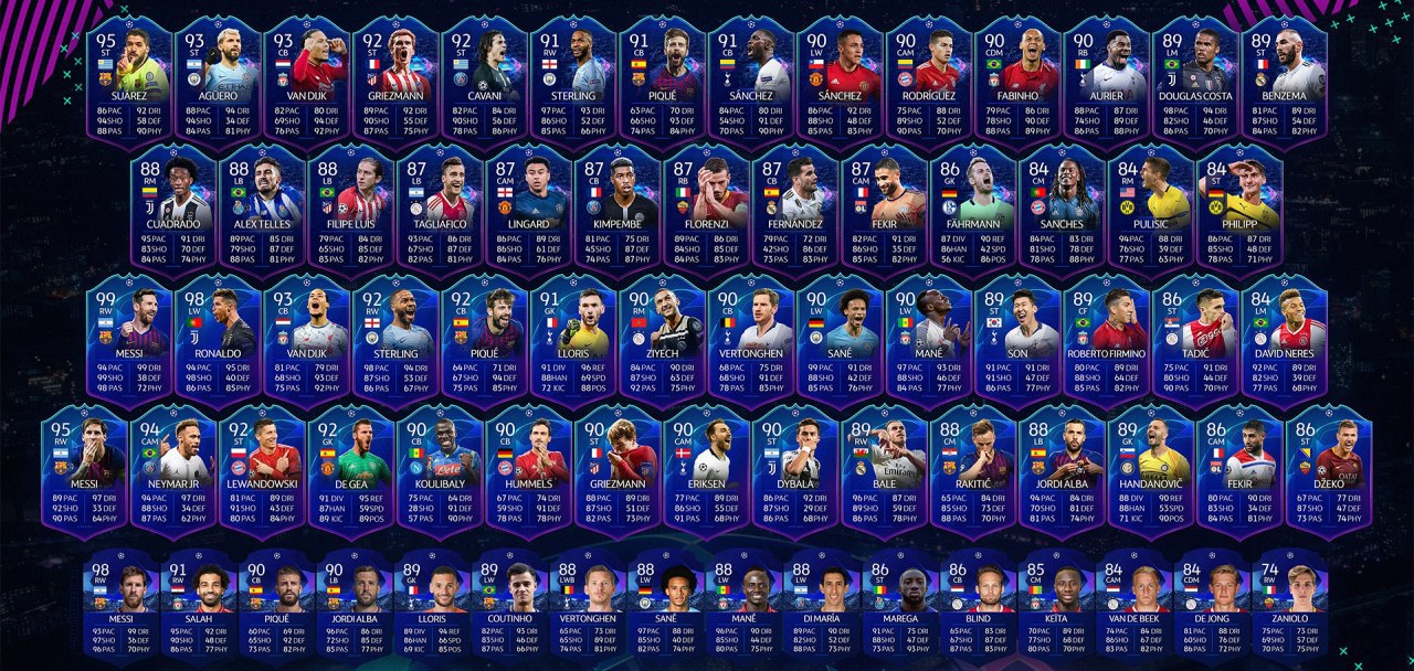 Список всех игроков, доступных в качестве награды за выполнение СБЧ «Премиум-улучшение UCL»