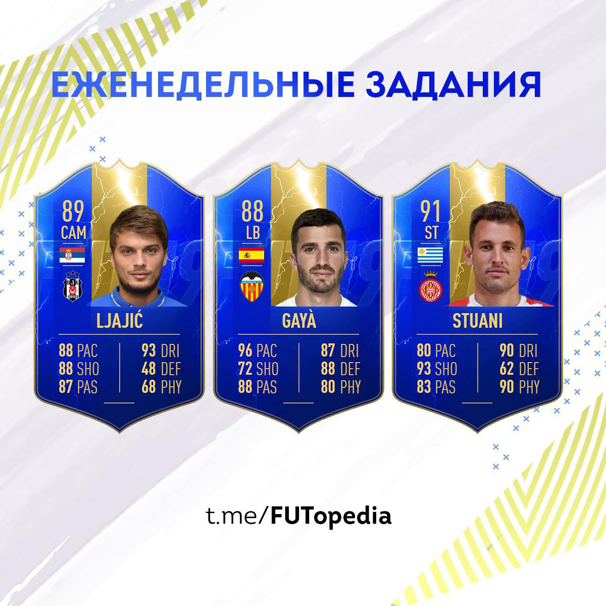 Карты Хосе Луиса Гайи, Кристиана Стуани и Адема Ляича, доступные в еженедельных заданиях