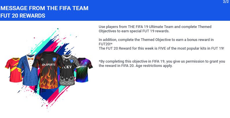 Выполнение еженедельных заданий с 23 августа по 12 сентября дает вам право получить награды в FUT 20 в дополнение к пакам, которые вы получите в FUT 19.