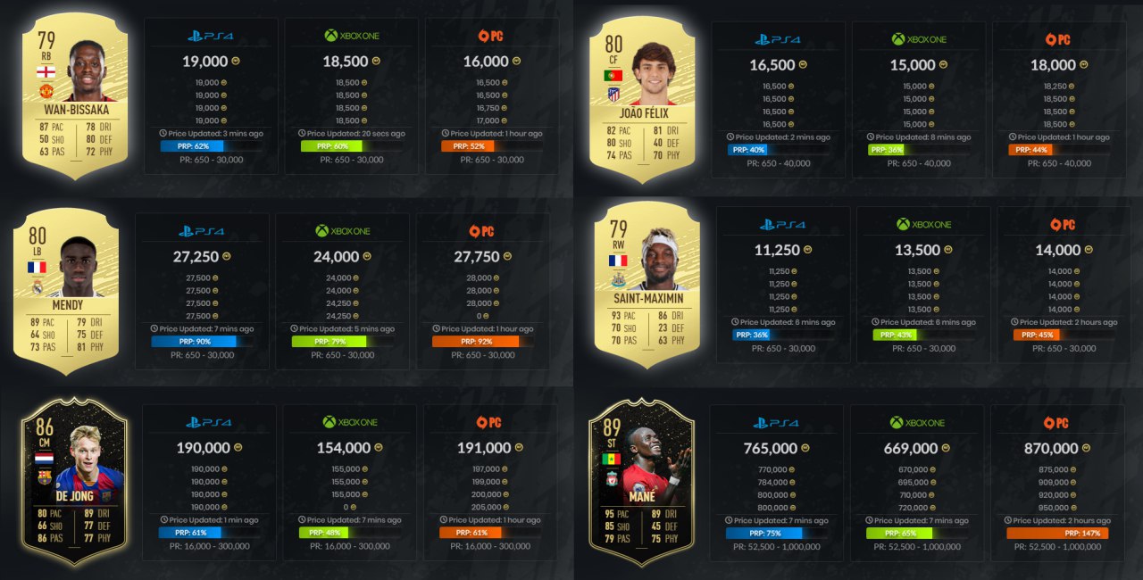 ​​Обновления ценового диапазона получили Эрон Уан-Биссака, Ферлан Менди, Аллан Сен-Максимен и Жоау Фелиш. Также вчера увеличили максимальную цену Френки Де Йонга и Садио Мане из команды недели 1. Все эти игроки теперь доступны на рынке