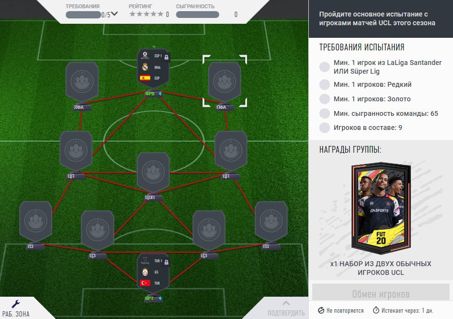 Также доступно тематическое СБЧ, посвященное команде группового этапа Лиги чемпионов
