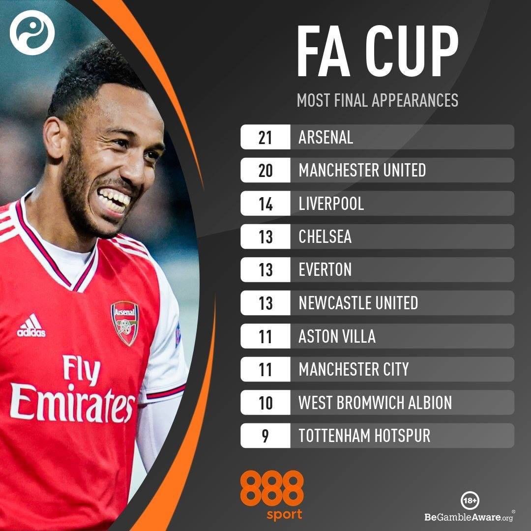 Вы знали, что «Арсенал» выходил в финал Кубка Англии чаще, чем любая другая команда за всю 148-летнюю историю турнира?