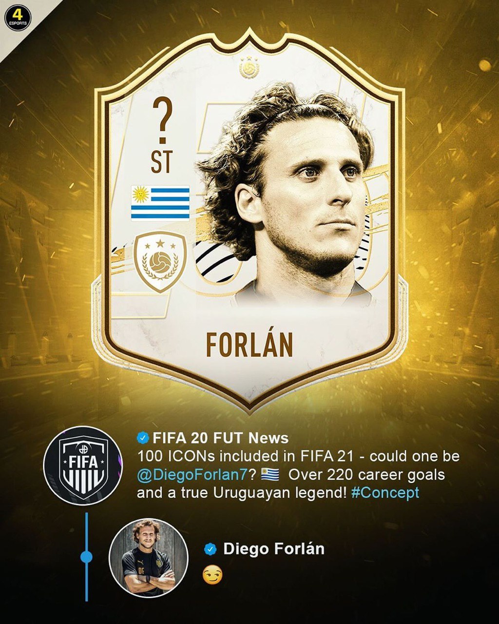 ​​Диего Форлан в твиттере намекнул на появление своей карты кумира в FUT 21