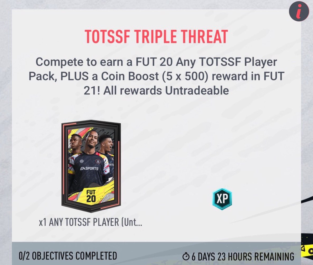 Также в игре появились задания игроками TOTSSF в FUT 20 и наградой в виде монет (5 x 500) в FUT 21