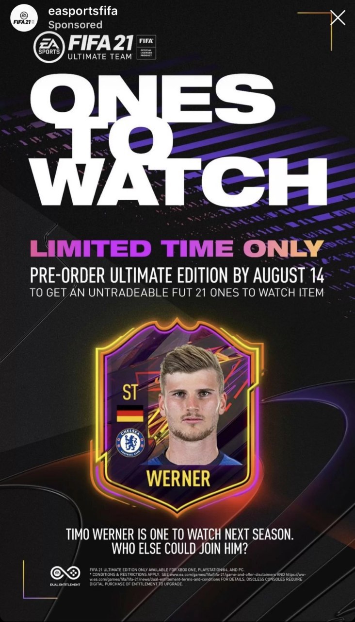 Стала известна первая официальная карта команды Ones to Watch в FUT 21 — Тимо Вернер!