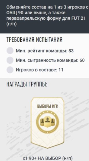 В игре доступно неповторяемое СБЧ на карту 90+ на выбор и первоапрельскую форму для FUT 21