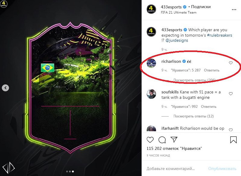 ​​В инстаграм-аккаунте 433esports под постом про карты Rulebreakers засветился Ришарлисон. Судя по всему, бразилец будет в команде