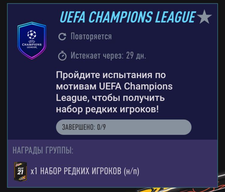 Группа сборок, посвященная Лиге чемпионов появилась в игре