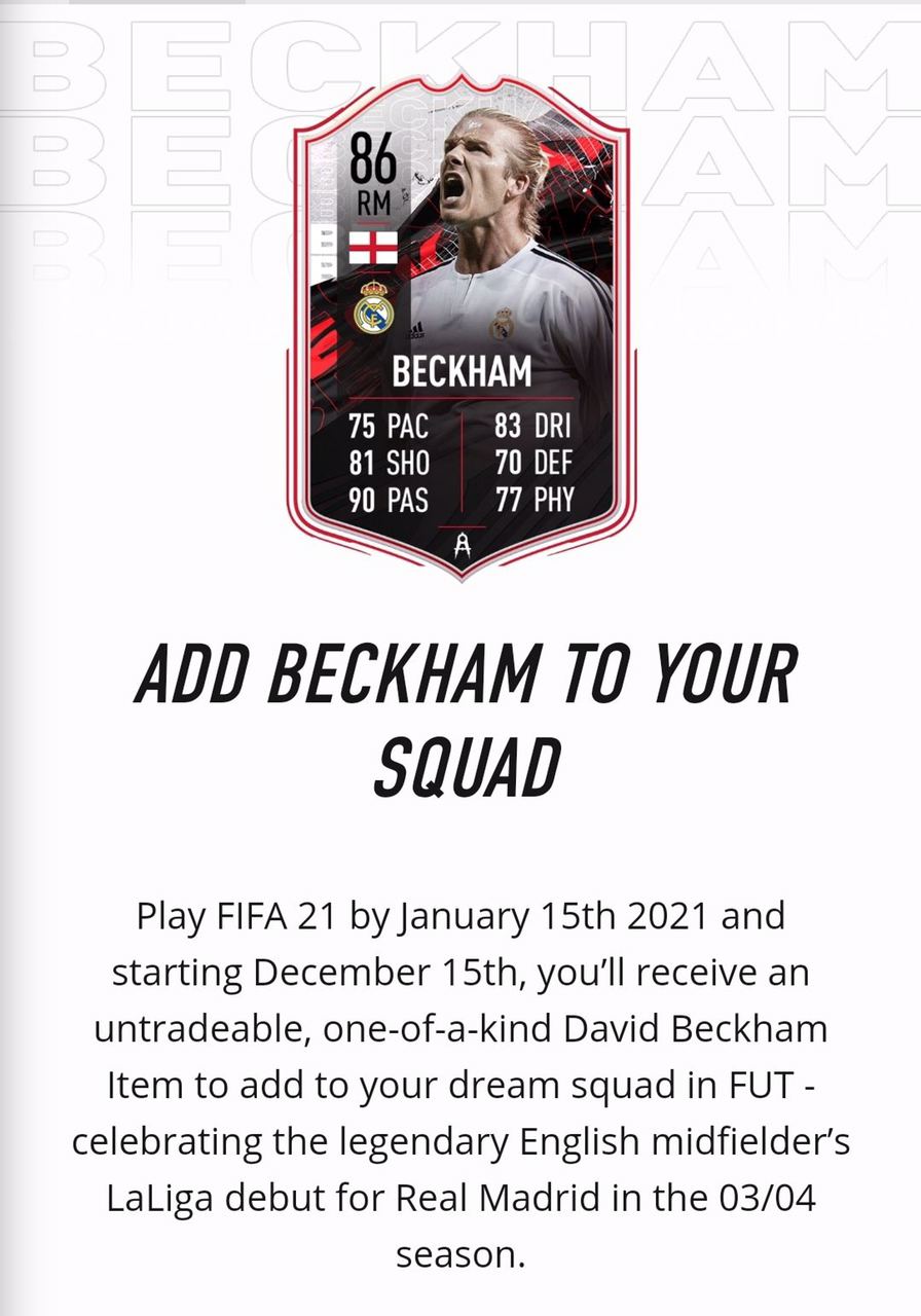 Уже практически официально! Ссылка, посвященная Дэвиду Бекхэму, появилась на британской версии сайта FIFA 21.