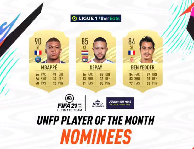 Мбаппе, Депай и Бен Йеддер — официальные номинанты на звание лучшего игрока месяца в Лиге 1