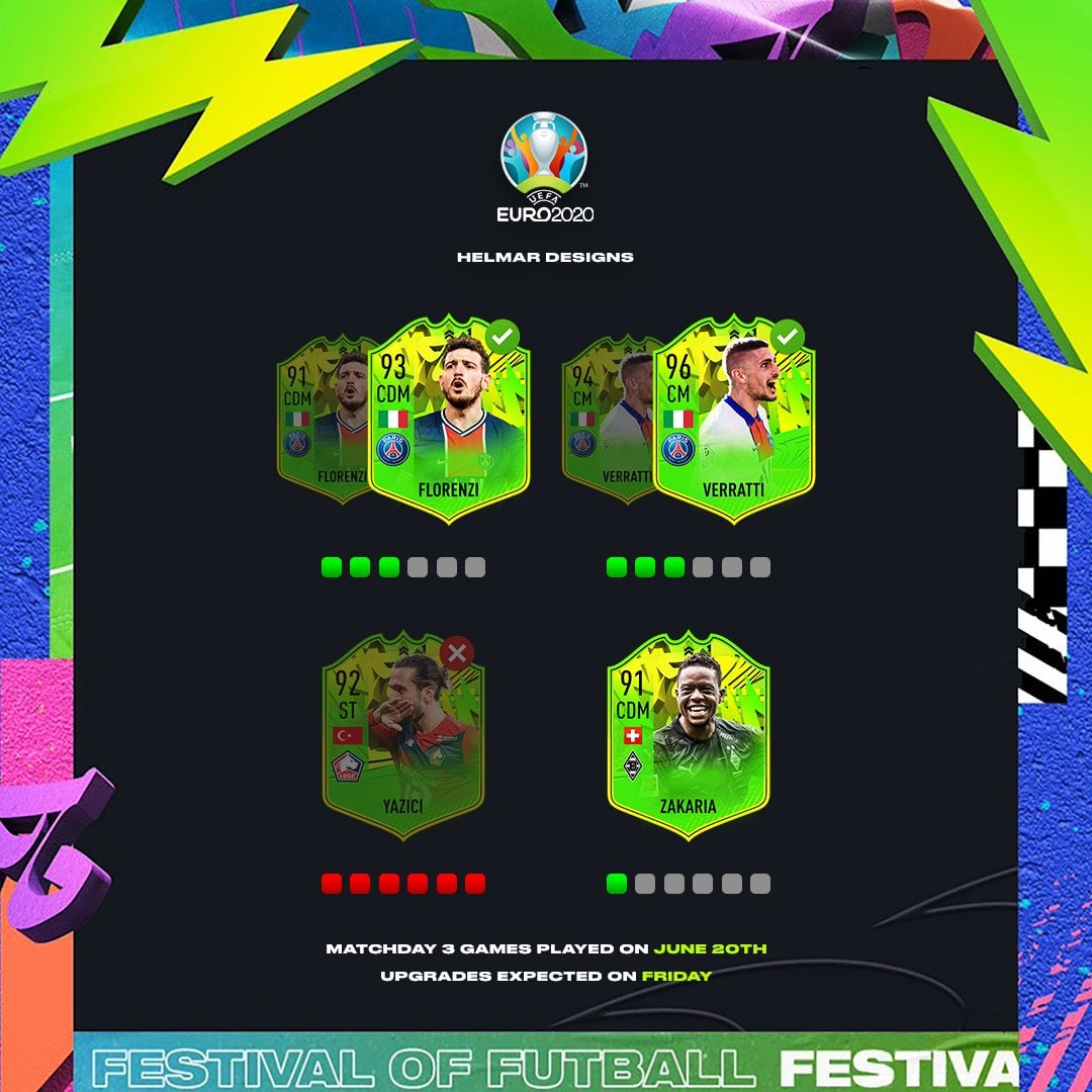 Италия стала первой командой, выигравшей 3 матча на Евро 2020, это значит, что Флоренци и Верратти получат обновления рейтингов.