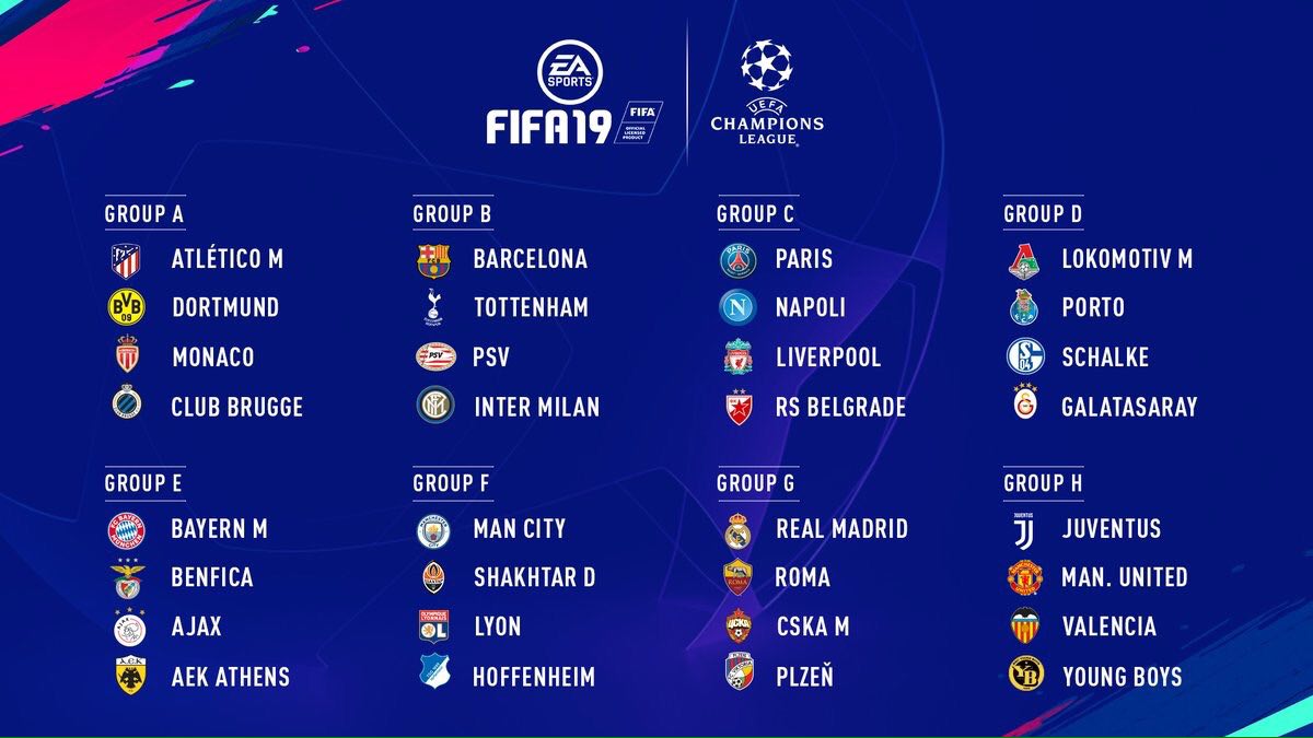 Итоги вчерашней жеребьевки Лиги чемпионов. На данный момент, не подтверждено присутствие в FIFA 19 лишь сербской «Црвены Звезды», все остальные участники групповой стадии будут представлены в игре